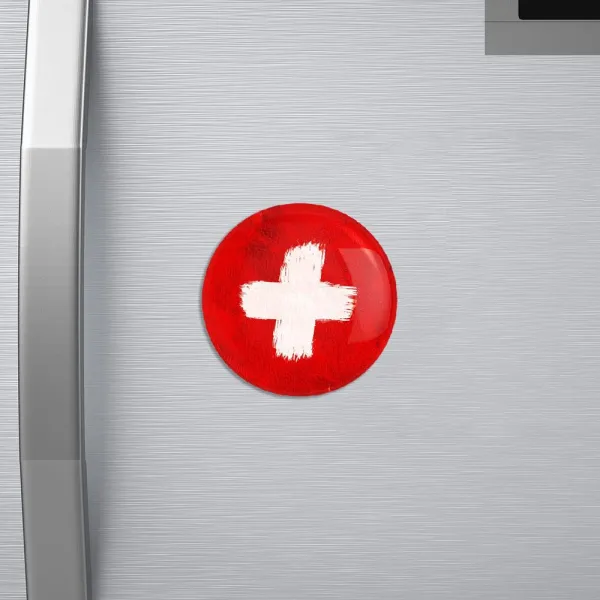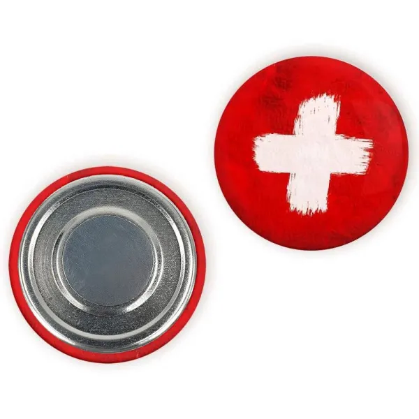 مگنت پرچم سوئیس خندالو با روکش سلفون مات مخملی ضدخش و قطعه پشتی فلزی تولید شده است که آهنربای اتمی بکار برده شده در محصول، بصورت مخفی تعبیه شده ودیده نمی شود. ضمن اینکه گیرایی بسیار بالایی داشته و به هیچ عنوان از روی یخچال نمی افتد.