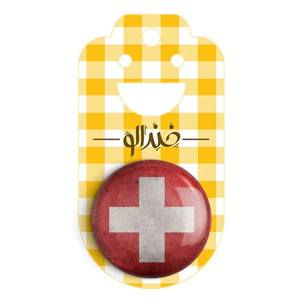 مگنت پرچم سوئیس خندالو با روکش سلفون مات مخملی ضدخش و قطعه پشتی فلزی تولید شده است که آهنربای اتمی بکار برده شده در محصول، بصورت مخفی تعبیه شده ودیده نمی شود. ضمن اینکه گیرایی بسیار بالایی داشته و به هیچ عنوان از روی یخچال نمی افتد.