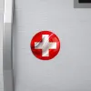 مگنت پرچم سوئیس خندالو با روکش سلفون مات مخملی ضدخش و قطعه پشتی فلزی تولید شده است که آهنربای اتمی بکار برده شده در محصول، بصورت مخفی تعبیه شده ودیده نمی شود. ضمن اینکه گیرایی بسیار بالایی داشته و به هیچ عنوان از روی یخچال نمی افتد.