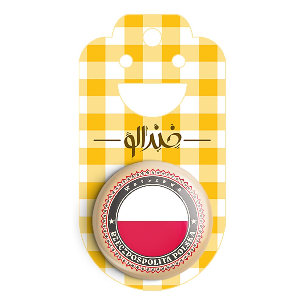 مگنت پرچم لهستان خندالو با روکش سلفون مات مخملی ضدخش و قطعه پشتی فلزی تولید شده است که آهنربای اتمی بکار برده شده در محصول، بصورت مخفی تعبیه شده ودیده نمی شود. ضمن اینکه گیرایی بسیار بالایی داشته و به هیچ عنوان از روی یخچال نمی افتد.