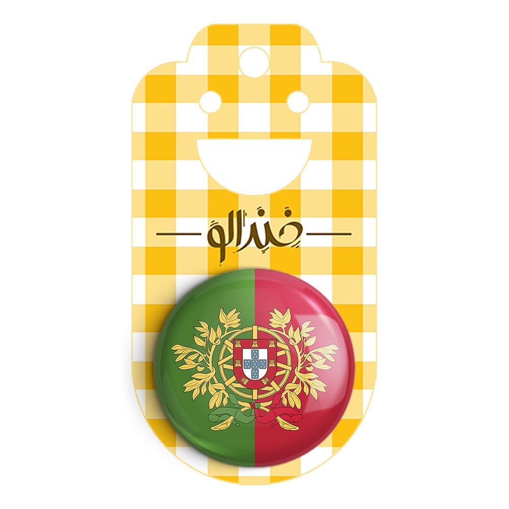 مگنت پرچم پرتغال خندالو با روکش سلفون مات مخملی ضدخش و قطعه پشتی فلزی تولید شده است که آهنربای اتمی بکار برده شده در محصول، بصورت مخفی تعبیه شده ودیده نمی شود. ضمن اینکه گیرایی بسیار بالایی داشته و به هیچ عنوان از روی یخچال نمی افتد.