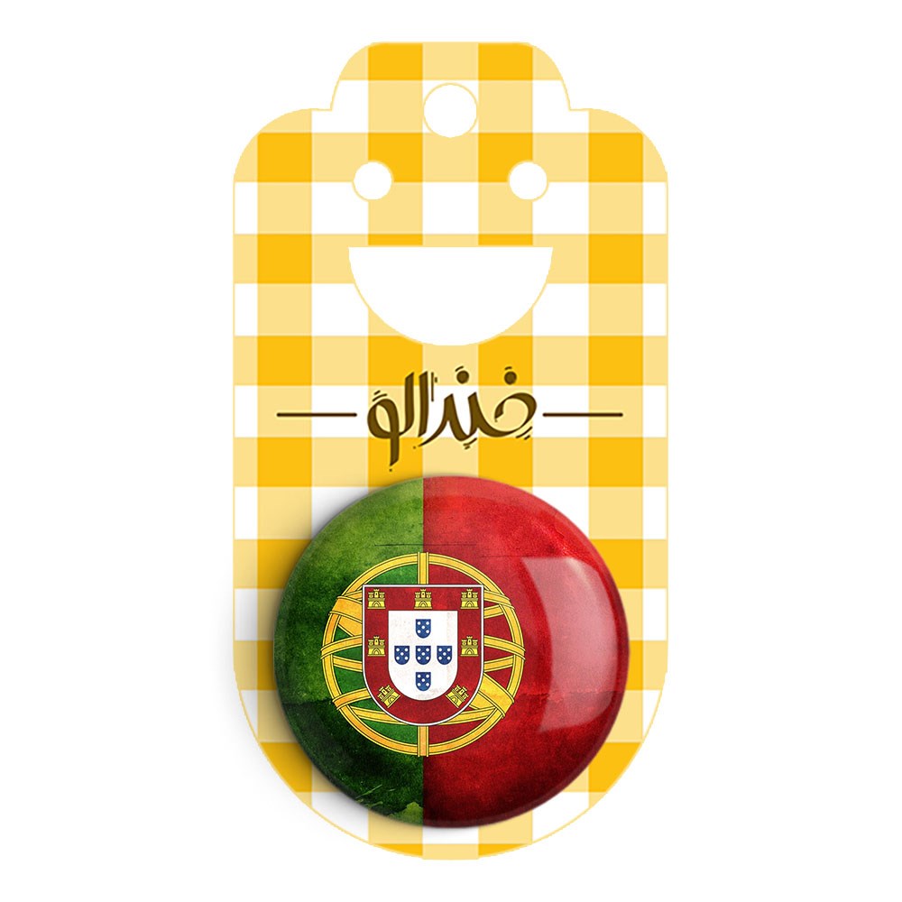 مگنت پرچم پرتغال خندالو با روکش سلفون مات مخملی ضدخش و قطعه پشتی فلزی تولید شده است که آهنربای اتمی بکار برده شده در محصول، بصورت مخفی تعبیه شده ودیده نمی شود. ضمن اینکه گیرایی بسیار بالایی داشته و به هیچ عنوان از روی یخچال نمی افتد.