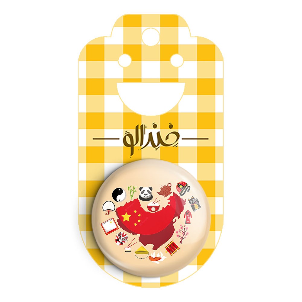 مگنت پرچم چین خندالو با روکش سلفون مات مخملی ضدخش و قطعه پشتی فلزی تولید شده است که آهنربای اتمی بکار برده شده در محصول، بصورت مخفی تعبیه شده ودیده نمی شود. ضمن اینکه گیرایی بسیار بالایی داشته و به هیچ عنوان از روی یخچال نمی افتد.
