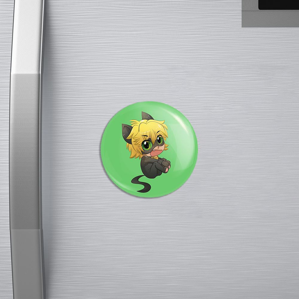 مگنت پسر گربه ای خندالو با روکش سلفون مات مخملی ضدخش و قطعه پشتی فلزی تولید شده است که آهنربای اتمی بکار برده شده در محصول، بصورت مخفی تعبیه شده ودیده نمی شود. ضمن اینکه گیرایی بسیار بالایی داشته و به هیچ عنوان از روی یخچال نمی افتد.