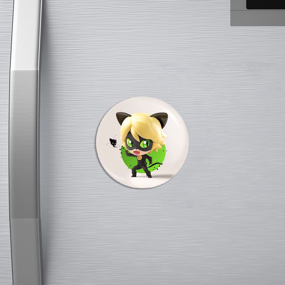 مگنت پسر گربه ای خندالو با روکش سلفون مات مخملی ضدخش و قطعه پشتی فلزی تولید شده است که آهنربای اتمی بکار برده شده در محصول، بصورت مخفی تعبیه شده ودیده نمی شود. ضمن اینکه گیرایی بسیار بالایی داشته و به هیچ عنوان از روی یخچال نمی افتد.