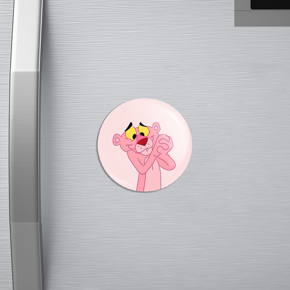مگنت پلنگ صورتی Pink Panther خندالو با روکش سلفون مات مخملی ضدخش و قطعه پشتی فلزی تولید شده است که آهنربای اتمی بکار برده شده در محصول، بصورت مخفی تعبیه شده ودیده نمی شود. ضمن اینکه گیرایی بسیار بالایی داشته و به هیچ عنوان از روی یخچال نمی افتد.