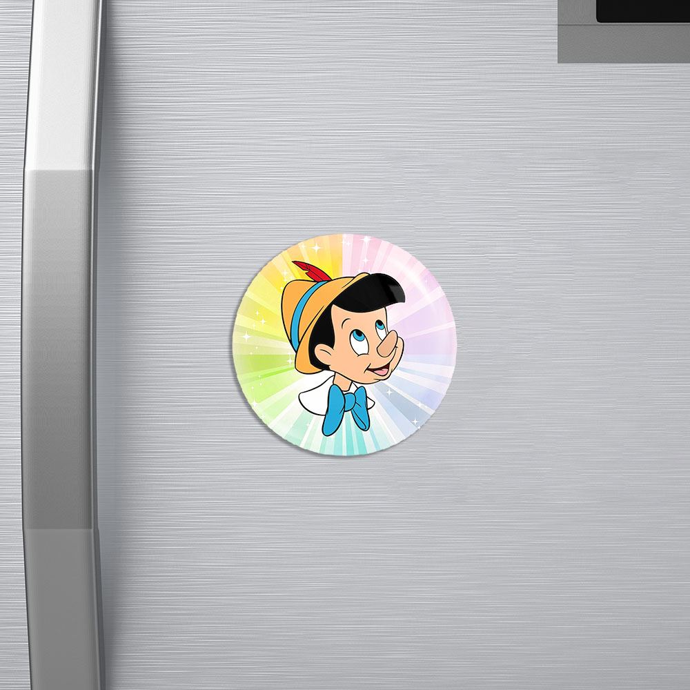 مگنت پینوکیو Pinocchio خندالو با روکش سلفون مات مخملی ضدخش و قطعه پشتی فلزی تولید شده است که آهنربای اتمی بکار برده شده در محصول، بصورت مخفی تعبیه شده ودیده نمی شود. ضمن اینکه گیرایی بسیار بالایی داشته و به هیچ عنوان از روی یخچال نمی افتد.