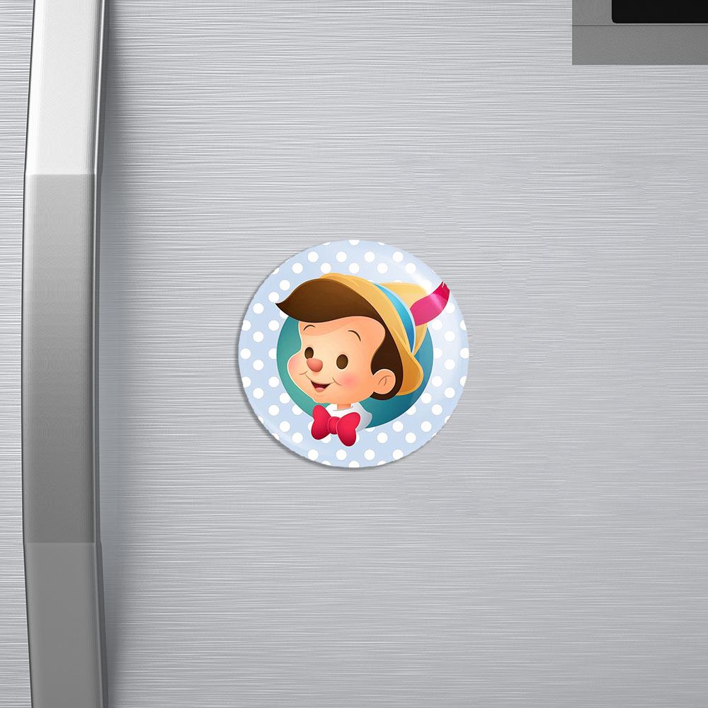 مگنت پینوکیو Pinocchio خندالو با روکش سلفون مات مخملی ضدخش و قطعه پشتی فلزی تولید شده است که آهنربای اتمی بکار برده شده در محصول، بصورت مخفی تعبیه شده ودیده نمی شود. ضمن اینکه گیرایی بسیار بالایی داشته و به هیچ عنوان از روی یخچال نمی افتد.