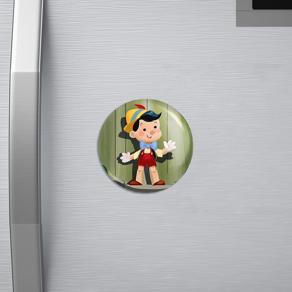 مگنت پینوکیو Pinocchio خندالو با روکش سلفون مات مخملی ضدخش و قطعه پشتی فلزی تولید شده است که آهنربای اتمی بکار برده شده در محصول، بصورت مخفی تعبیه شده ودیده نمی شود. ضمن اینکه گیرایی بسیار بالایی داشته و به هیچ عنوان از روی یخچال نمی افتد.