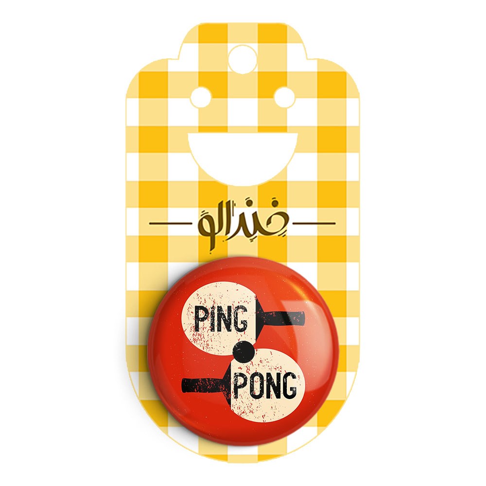 مگنت پینگ پنگ Ping Pong خندالو با روکش سلفون مات مخملی ضدخش و قطعه پشتی فلزی تولید شده است که آهنربای اتمی بکار برده شده در محصول، بصورت مخفی تعبیه شده ودیده نمی شود. ضمن اینکه گیرایی بسیار بالایی داشته و به هیچ عنوان از روی یخچال نمی افتد.
