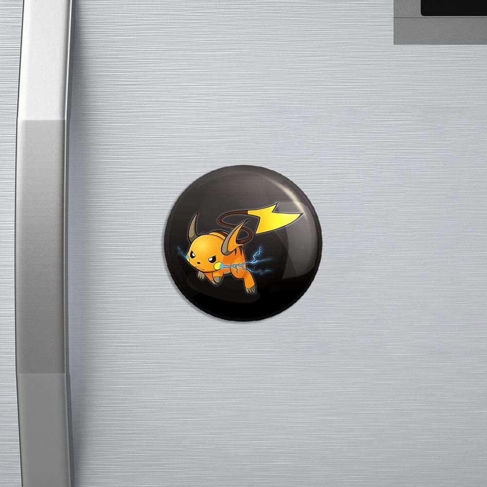 مگنت پیکاچو انیمه پوکمون خندالو با روکش سلفون مات مخملی ضدخش و قطعه پشتی فلزی تولید شده است که آهنربای اتمی بکار برده شده در محصول، بصورت مخفی تعبیه شده ودیده نمی شود. ضمن اینکه گیرایی بسیار بالایی داشته و به هیچ عنوان از روی یخچال نمی افتد.