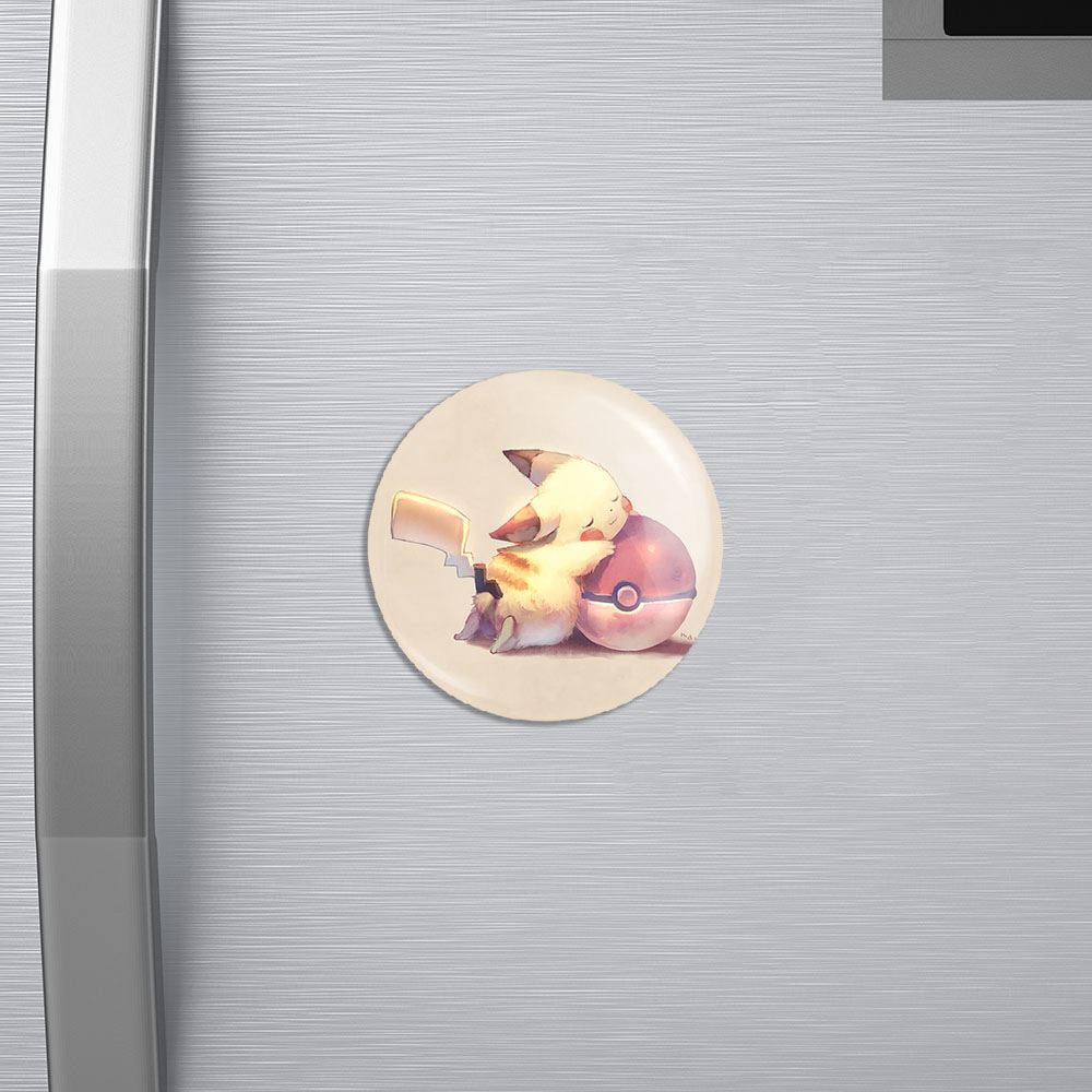 مگنت پیکاچو انیمه پوکمون خندالو با روکش سلفون مات مخملی ضدخش و قطعه پشتی فلزی تولید شده است که آهنربای اتمی بکار برده شده در محصول، بصورت مخفی تعبیه شده ودیده نمی شود. ضمن اینکه گیرایی بسیار بالایی داشته و به هیچ عنوان از روی یخچال نمی افتد.