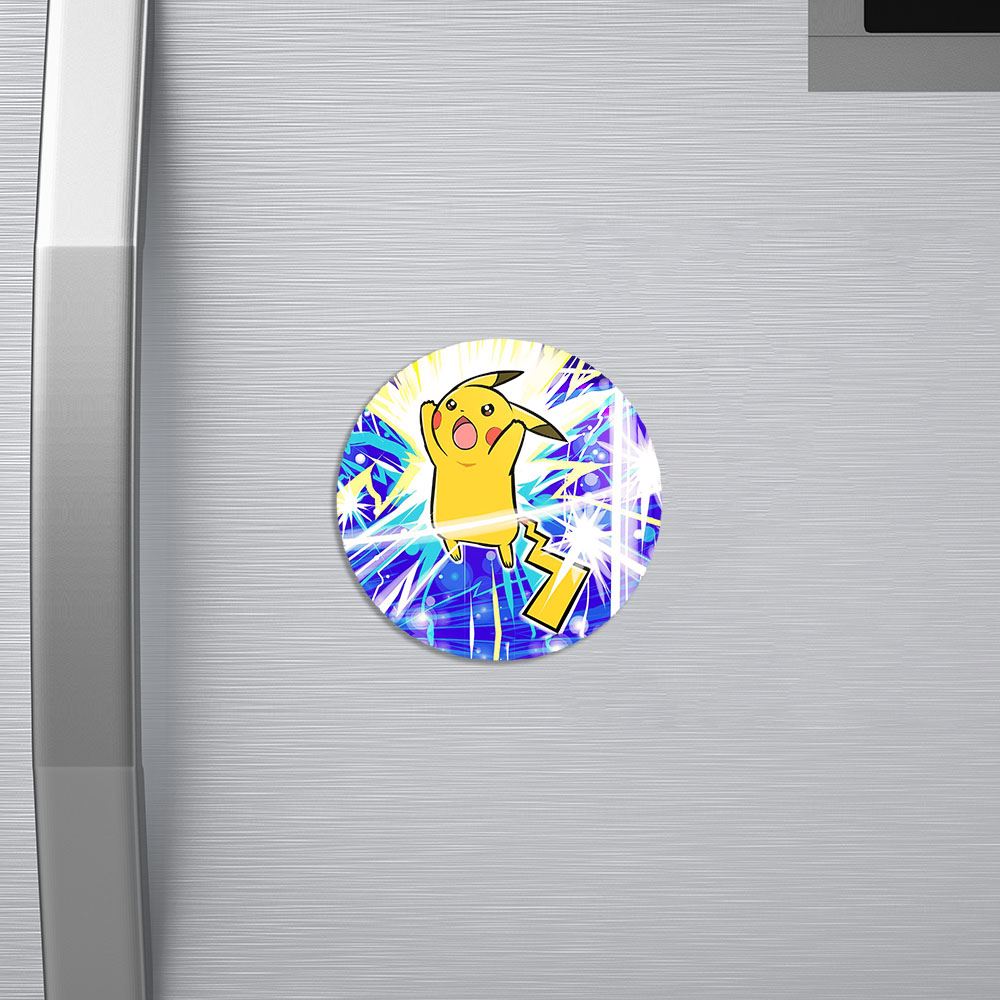 مگنت پیکاچو انیمه پوکمون خندالو با روکش سلفون مات مخملی ضدخش و قطعه پشتی فلزی تولید شده است که آهنربای اتمی بکار برده شده در محصول، بصورت مخفی تعبیه شده ودیده نمی شود. ضمن اینکه گیرایی بسیار بالایی داشته و به هیچ عنوان از روی یخچال نمی افتد.