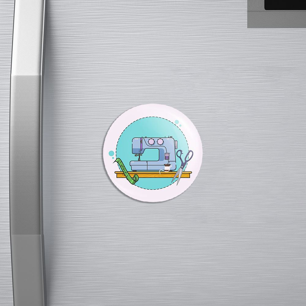 مگنت چرخ خیاطی خندالو با روکش سلفون مات مخملی ضدخش و قطعه پشتی فلزی تولید شده است که آهنربای اتمی بکار برده شده در محصول، بصورت مخفی تعبیه شده ودیده نمی شود. ضمن اینکه گیرایی بسیار بالایی داشته و به هیچ عنوان از روی یخچال نمی افتد.