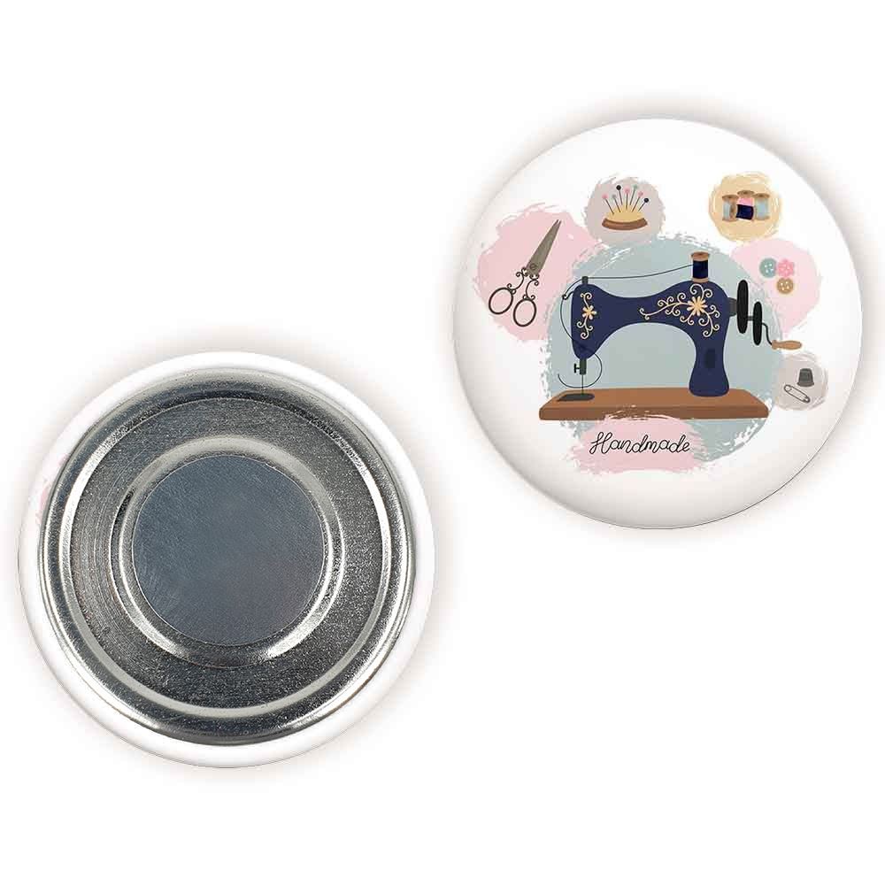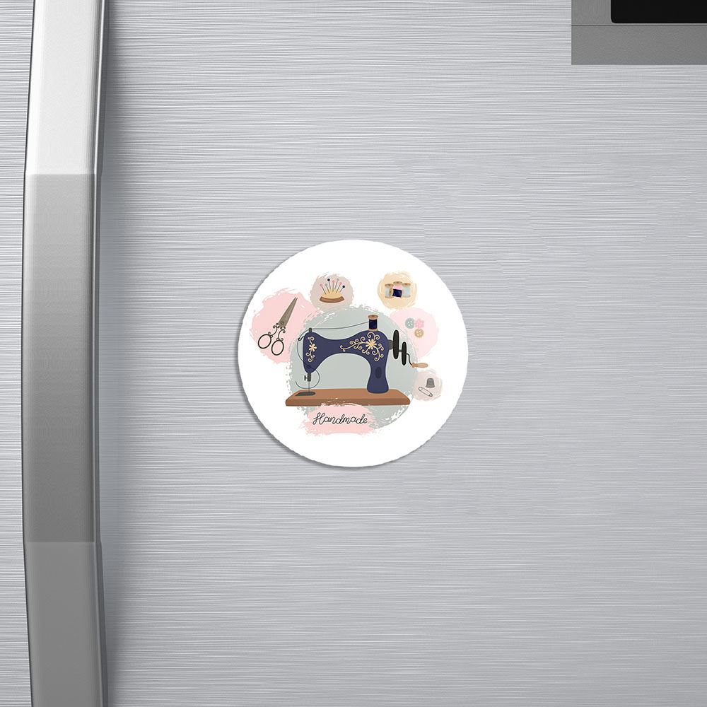 مگنت چرخ خیاطی خندالو با روکش سلفون مات مخملی ضدخش و قطعه پشتی فلزی تولید شده است که آهنربای اتمی بکار برده شده در محصول، بصورت مخفی تعبیه شده ودیده نمی شود. ضمن اینکه گیرایی بسیار بالایی داشته و به هیچ عنوان از روی یخچال نمی افتد.