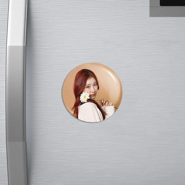 مگنت چریونگ گروه ایتزی ITZY خندالو با روکش سلفون مات مخملی ضدخش و قطعه پشتی فلزی تولید شده است که آهنربای اتمی بکار برده شده در محصول، بصورت مخفی تعبیه شده ودیده نمی شود. ضمن اینکه گیرایی بسیار بالایی داشته و به هیچ عنوان از روی یخچال نمی افتد.