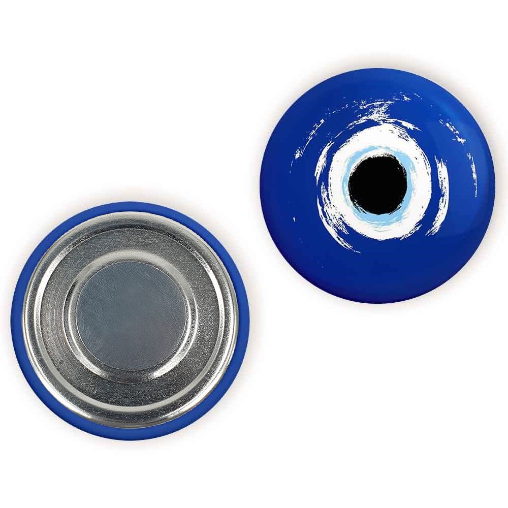 مگنت چشم نظر خندالو با روکش سلفون مات مخملی ضدخش و قطعه پشتی فلزی تولید شده است که آهنربای اتمی بکار برده شده در محصول، بصورت مخفی تعبیه شده ودیده نمی شود. ضمن اینکه گیرایی بسیار بالایی داشته و به هیچ عنوان از روی یخچال نمی افتد.