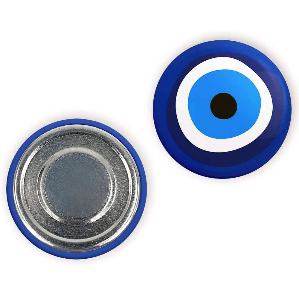 مگنت چشم نظر خندالو با روکش سلفون مات مخملی ضدخش و قطعه پشتی فلزی تولید شده است که آهنربای اتمی بکار برده شده در محصول، بصورت مخفی تعبیه شده ودیده نمی شود. ضمن اینکه گیرایی بسیار بالایی داشته و به هیچ عنوان از روی یخچال نمی افتد.