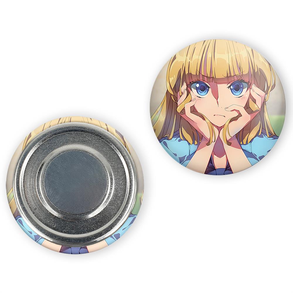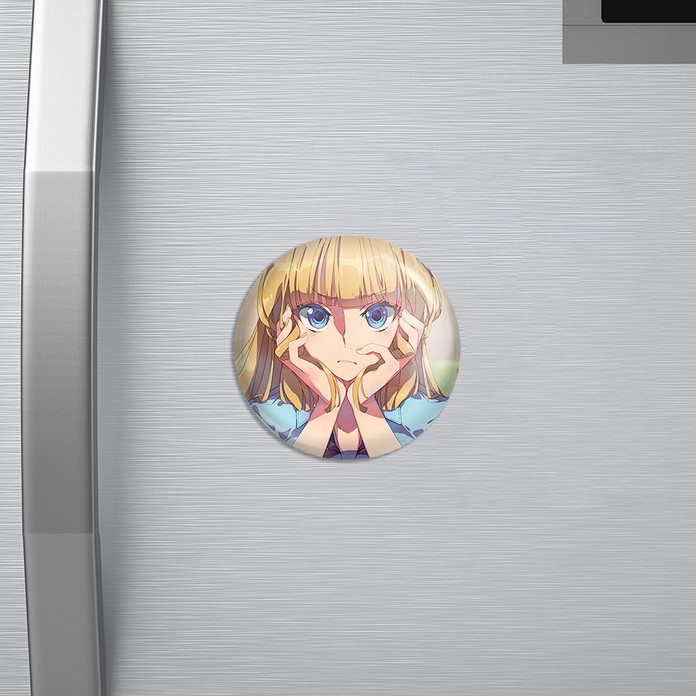 مگنت کاروزاوا انیمه کلاس نخبگان خندالو با روکش سلفون مات مخملی ضدخش و قطعه پشتی فلزی تولید شده است که آهنربای اتمی بکار برده شده در محصول، بصورت مخفی تعبیه شده ودیده نمی شود. ضمن اینکه گیرایی بسیار بالایی داشته و به هیچ عنوان از روی یخچال نمی افتد.