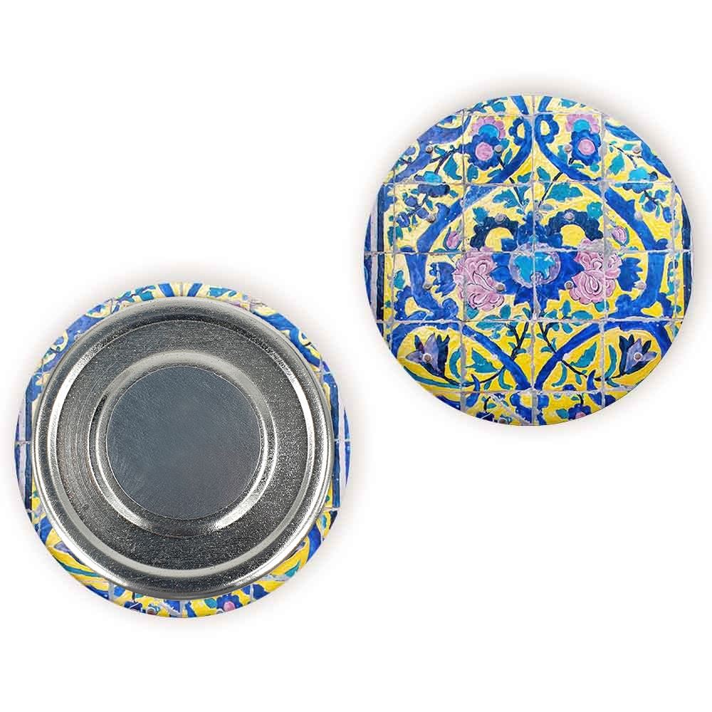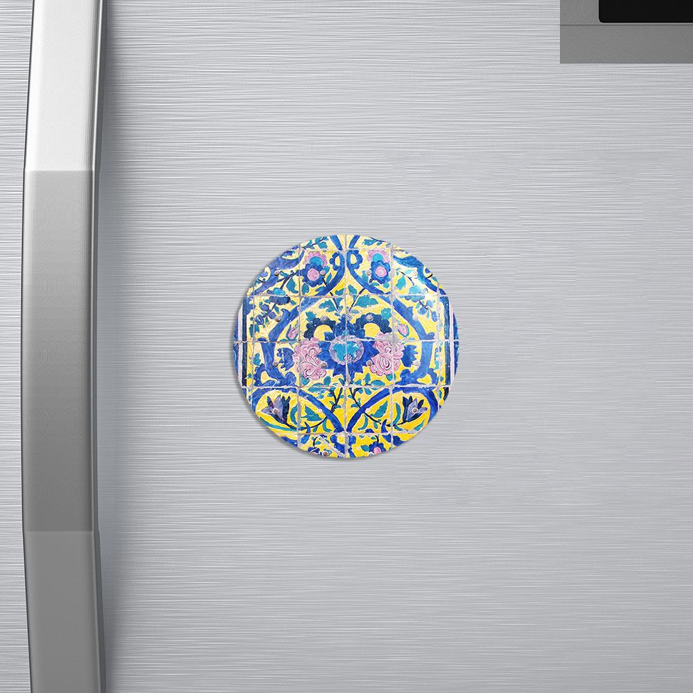 مگنت کاشی خندالو با روکش سلفون مات مخملی ضدخش و قطعه پشتی فلزی تولید شده است که آهنربای اتمی بکار برده شده در محصول، بصورت مخفی تعبیه شده ودیده نمی شود. ضمن اینکه گیرایی بسیار بالایی داشته و به هیچ عنوان از روی یخچال نمی افتد.