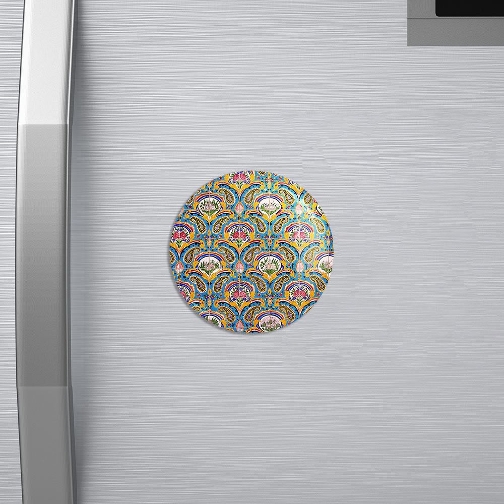 مگنت کاشی خندالو با روکش سلفون مات مخملی ضدخش و قطعه پشتی فلزی تولید شده است که آهنربای اتمی بکار برده شده در محصول، بصورت مخفی تعبیه شده ودیده نمی شود. ضمن اینکه گیرایی بسیار بالایی داشته و به هیچ عنوان از روی یخچال نمی افتد.