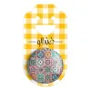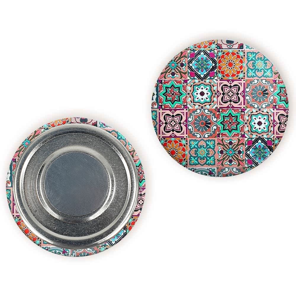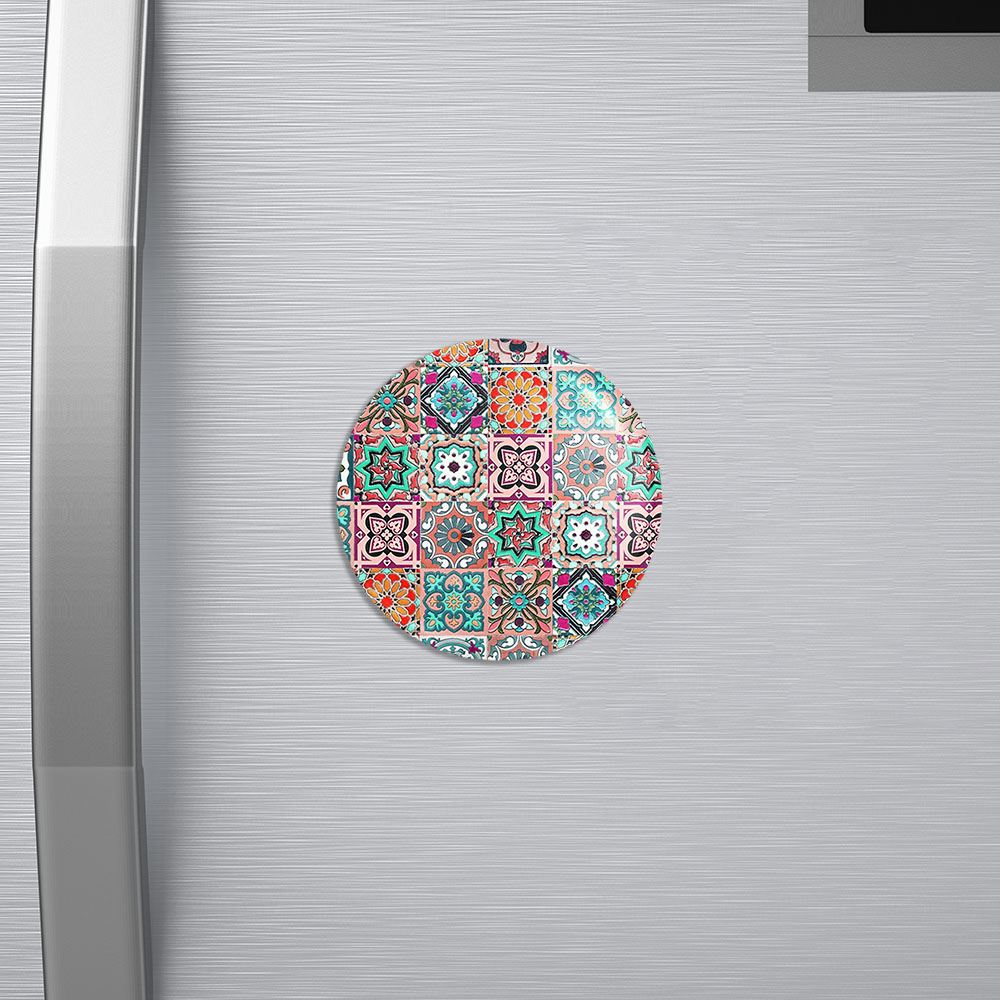 مگنت کاشی خندالو با روکش سلفون مات مخملی ضدخش و قطعه پشتی فلزی تولید شده است که آهنربای اتمی بکار برده شده در محصول، بصورت مخفی تعبیه شده ودیده نمی شود. ضمن اینکه گیرایی بسیار بالایی داشته و به هیچ عنوان از روی یخچال نمی افتد.