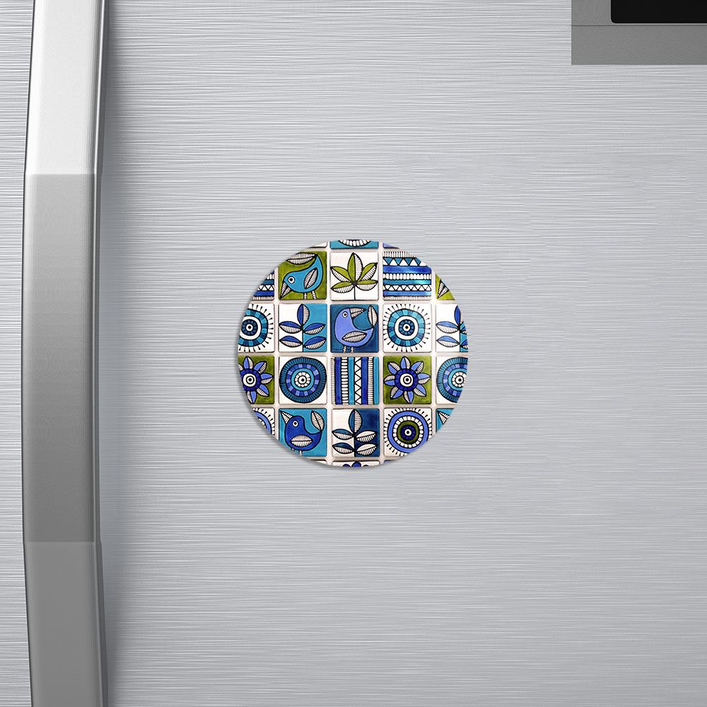 مگنت کاشی خندالو با روکش سلفون مات مخملی ضدخش و قطعه پشتی فلزی تولید شده است که آهنربای اتمی بکار برده شده در محصول، بصورت مخفی تعبیه شده ودیده نمی شود. ضمن اینکه گیرایی بسیار بالایی داشته و به هیچ عنوان از روی یخچال نمی افتد.