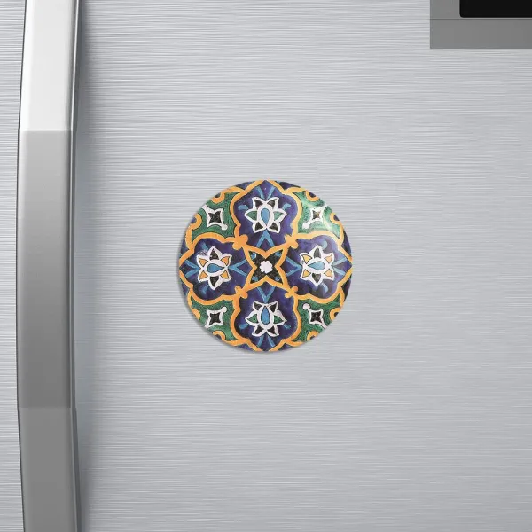 مگنت کاشی خندالو با روکش سلفون مات مخملی ضدخش و قطعه پشتی فلزی تولید شده است که آهنربای اتمی بکار برده شده در محصول، بصورت مخفی تعبیه شده ودیده نمی شود. ضمن اینکه گیرایی بسیار بالایی داشته و به هیچ عنوان از روی یخچال نمی افتد.