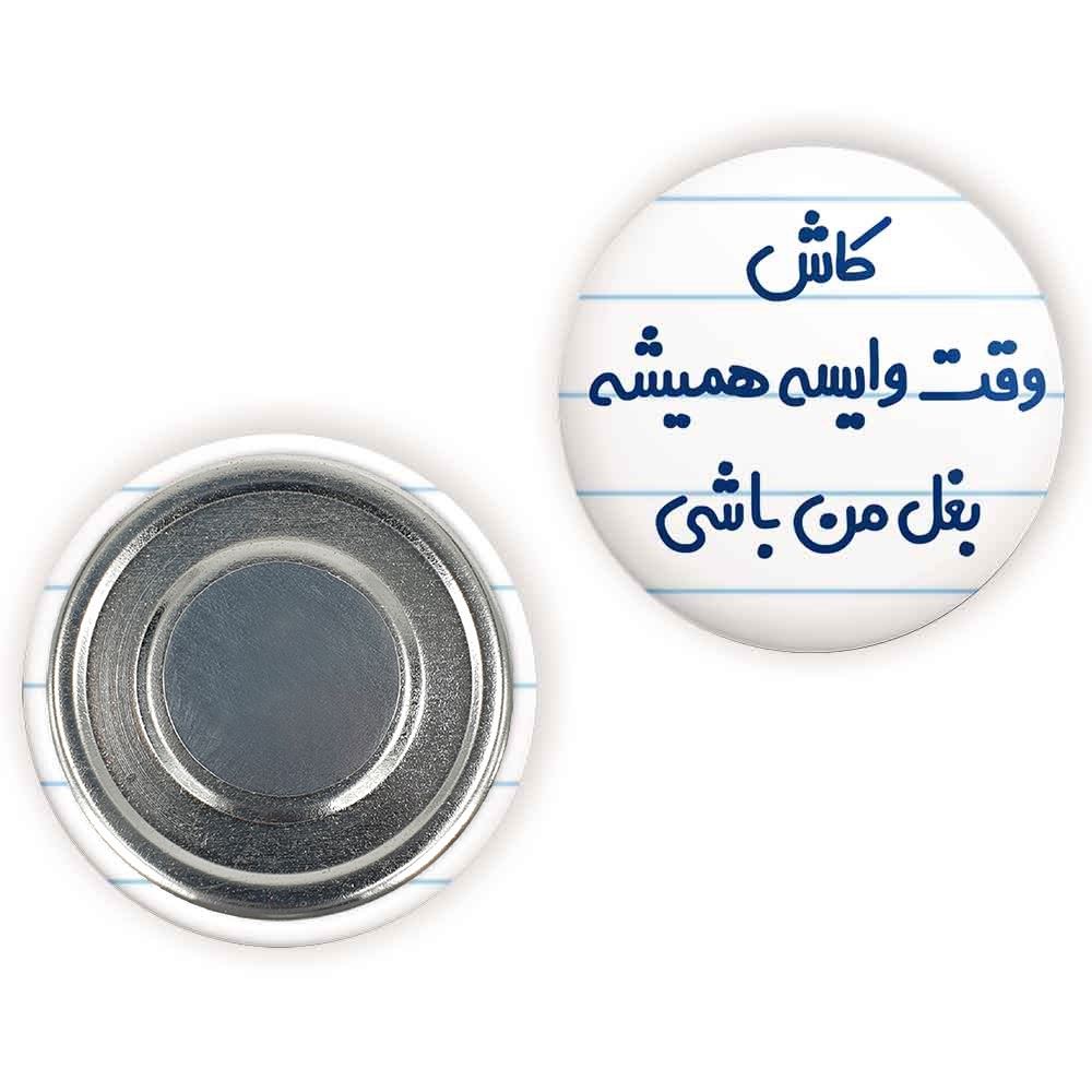 مگنت کاش وقت وایسه بغل من باشی خندالو با روکش سلفون مات مخملی ضدخش و قطعه پشتی فلزی تولید شده است که آهنربای اتمی بکار برده شده در محصول، بصورت مخفی تعبیه شده ودیده نمی شود. ضمن اینکه گیرایی بسیار بالایی داشته و به هیچ عنوان از روی یخچال نمی افتد.