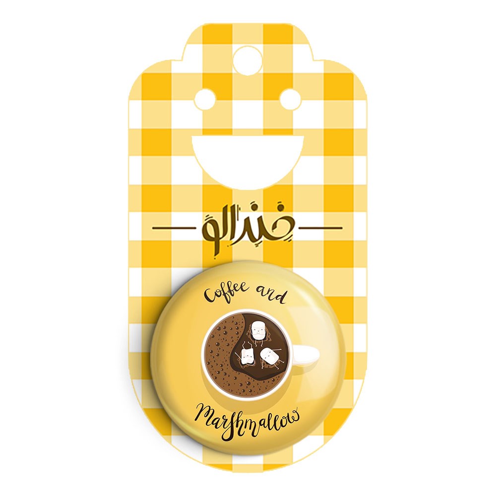 مگنت کافی شاپ قهوه خندالو با روکش سلفون مات مخملی ضدخش و قطعه پشتی فلزی تولید شده است که آهنربای اتمی بکار برده شده در محصول، بصورت مخفی تعبیه شده ودیده نمی شود. ضمن اینکه گیرایی بسیار بالایی داشته و به هیچ عنوان از روی یخچال نمی افتد.