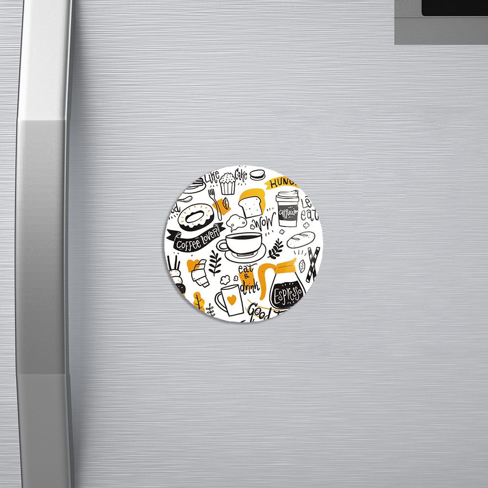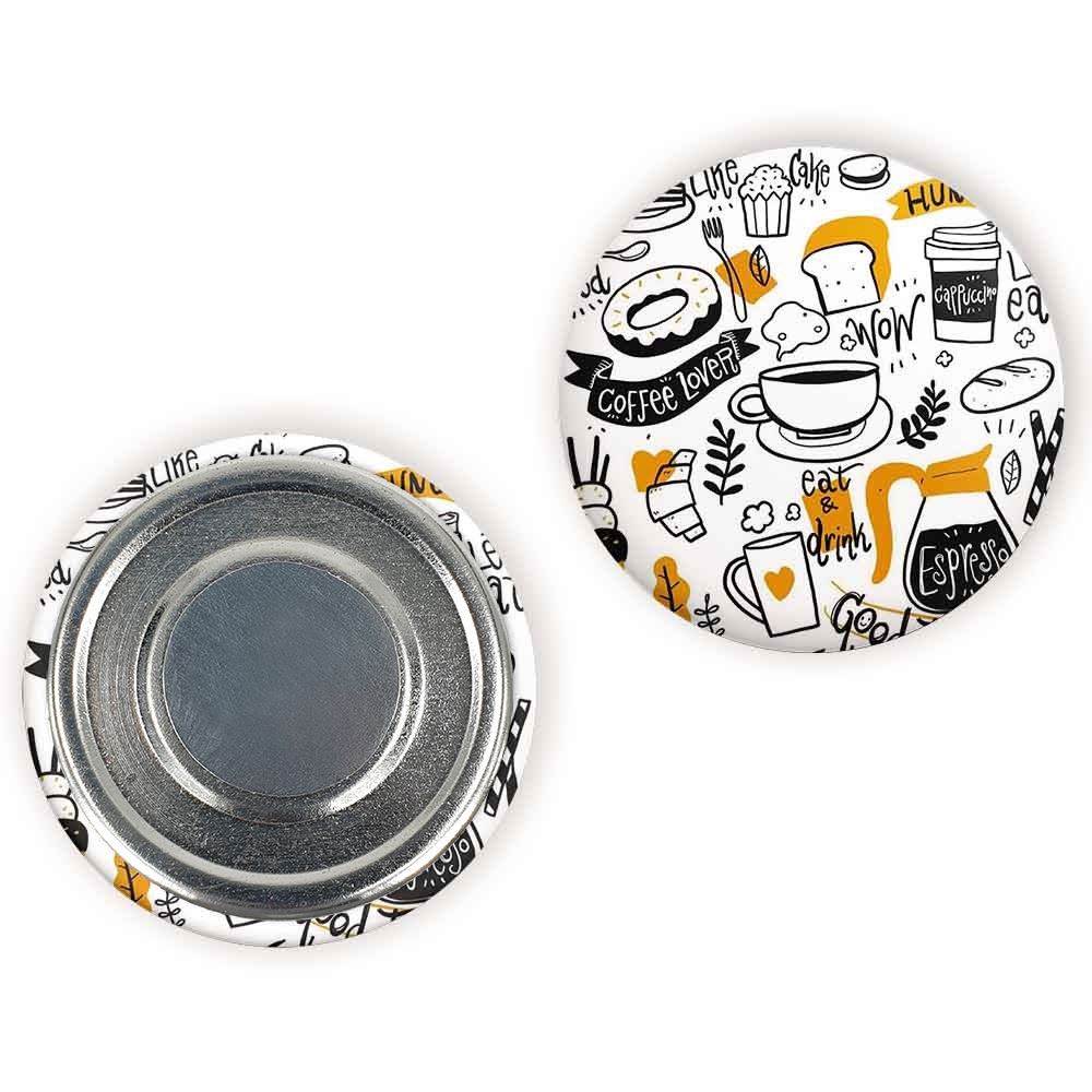 مگنت کافی شاپ قهوه خندالو با روکش سلفون مات مخملی ضدخش و قطعه پشتی فلزی تولید شده است که آهنربای اتمی بکار برده شده در محصول، بصورت مخفی تعبیه شده ودیده نمی شود. ضمن اینکه گیرایی بسیار بالایی داشته و به هیچ عنوان از روی یخچال نمی افتد.