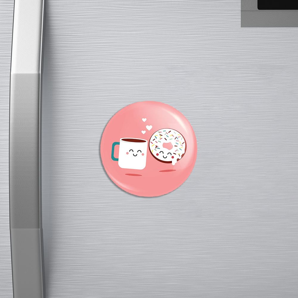 مگنت کافی شاپ قهوه خندالو با روکش سلفون مات مخملی ضدخش و قطعه پشتی فلزی تولید شده است که آهنربای اتمی بکار برده شده در محصول، بصورت مخفی تعبیه شده ودیده نمی شود. ضمن اینکه گیرایی بسیار بالایی داشته و به هیچ عنوان از روی یخچال نمی افتد.