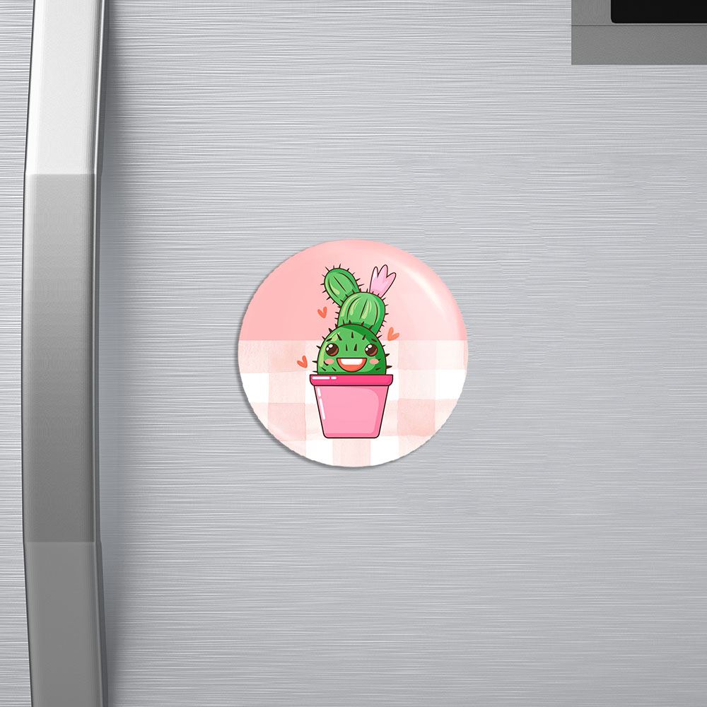 مگنت کاکتوس خندالو با روکش سلفون مات مخملی ضدخش و قطعه پشتی فلزی تولید شده است که آهنربای اتمی بکار برده شده در محصول، بصورت مخفی تعبیه شده ودیده نمی شود. ضمن اینکه گیرایی بسیار بالایی داشته و به هیچ عنوان از روی یخچال نمی افتد.