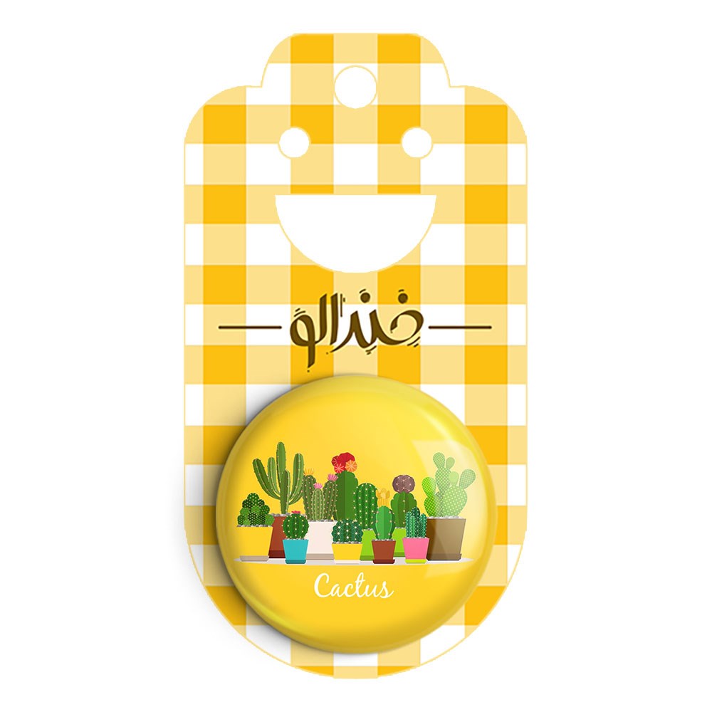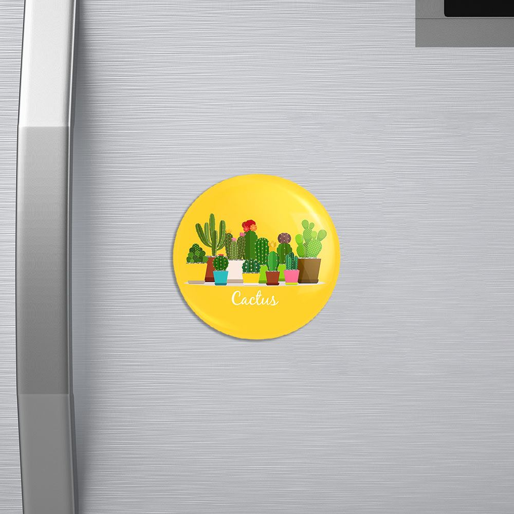 مگنت کاکتوس خندالو با روکش سلفون مات مخملی ضدخش و قطعه پشتی فلزی تولید شده است که آهنربای اتمی بکار برده شده در محصول، بصورت مخفی تعبیه شده ودیده نمی شود. ضمن اینکه گیرایی بسیار بالایی داشته و به هیچ عنوان از روی یخچال نمی افتد.