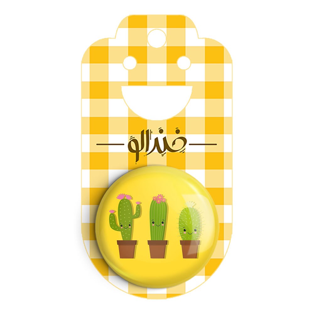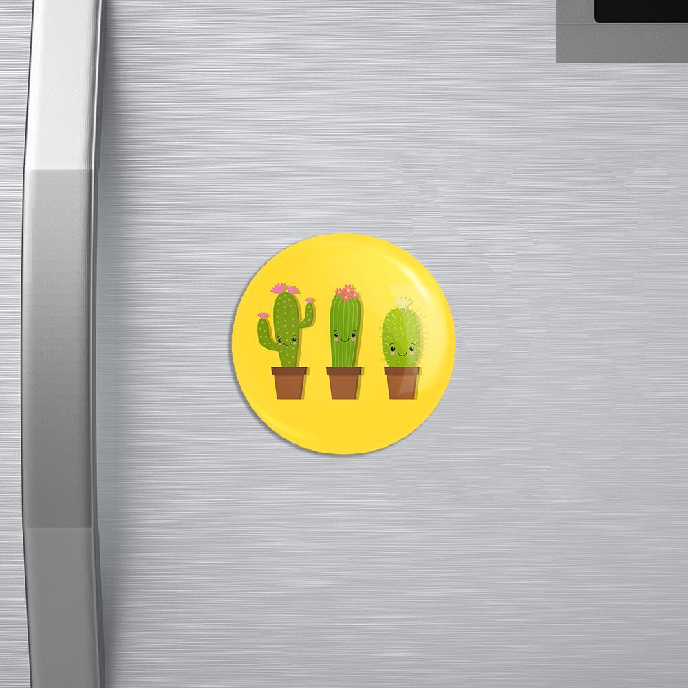 مگنت کاکتوس خندالو با روکش سلفون مات مخملی ضدخش و قطعه پشتی فلزی تولید شده است که آهنربای اتمی بکار برده شده در محصول، بصورت مخفی تعبیه شده ودیده نمی شود. ضمن اینکه گیرایی بسیار بالایی داشته و به هیچ عنوان از روی یخچال نمی افتد.