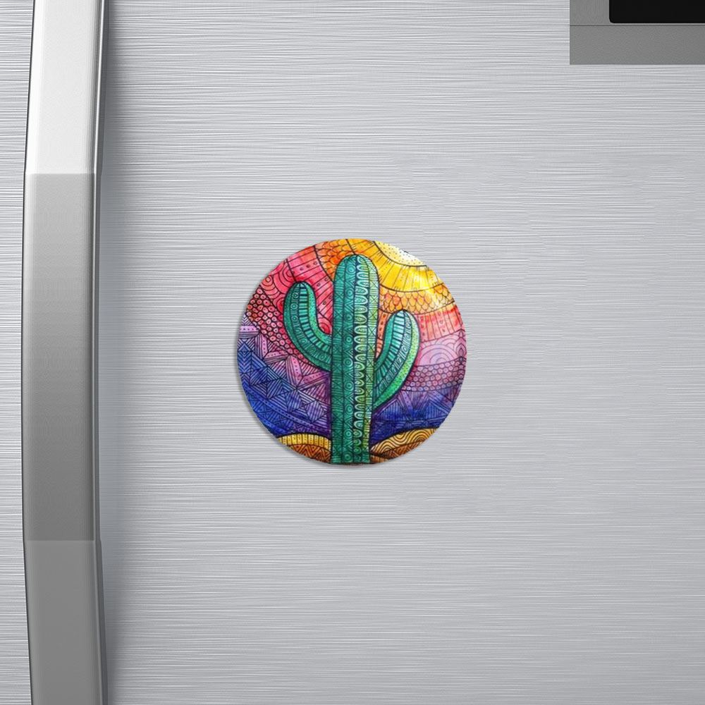 مگنت کاکتوس خندالو با روکش سلفون مات مخملی ضدخش و قطعه پشتی فلزی تولید شده است که آهنربای اتمی بکار برده شده در محصول، بصورت مخفی تعبیه شده ودیده نمی شود. ضمن اینکه گیرایی بسیار بالایی داشته و به هیچ عنوان از روی یخچال نمی افتد.