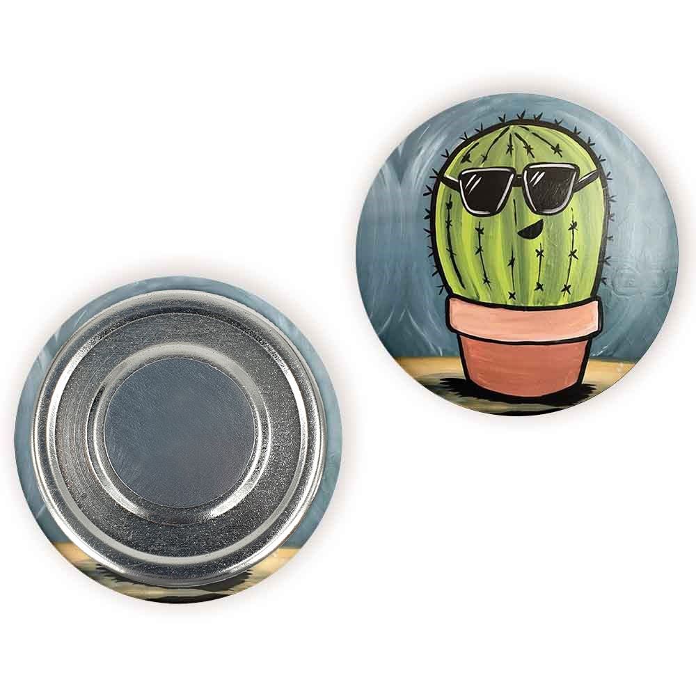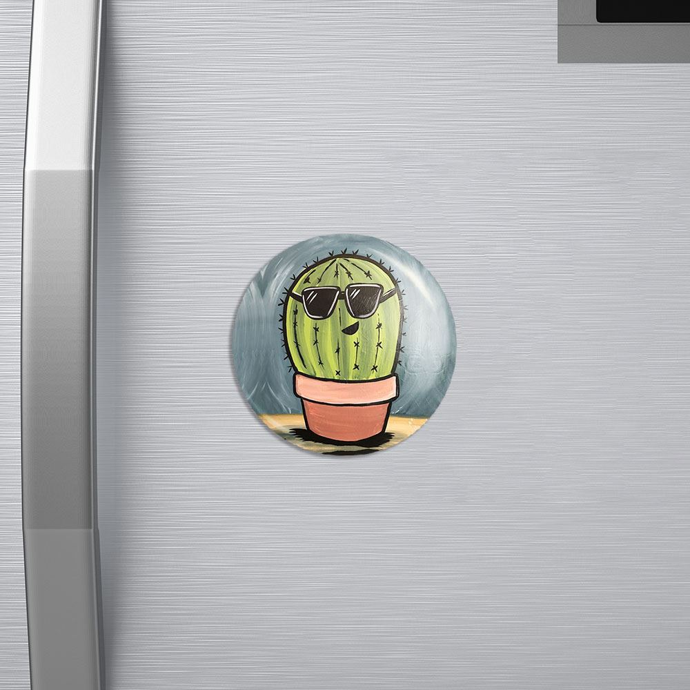 مگنت کاکتوس خندالو با روکش سلفون مات مخملی ضدخش و قطعه پشتی فلزی تولید شده است که آهنربای اتمی بکار برده شده در محصول، بصورت مخفی تعبیه شده ودیده نمی شود. ضمن اینکه گیرایی بسیار بالایی داشته و به هیچ عنوان از روی یخچال نمی افتد.