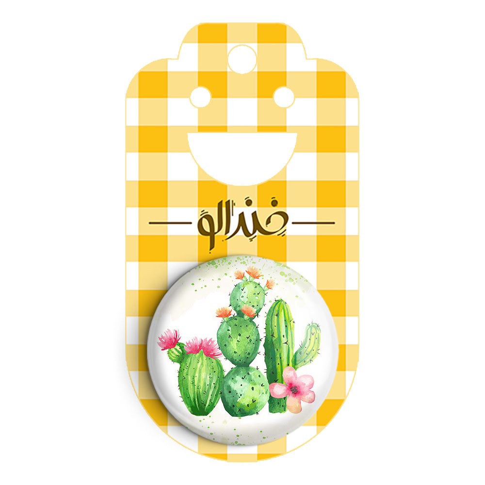 مگنت کاکتوس خندالو با روکش سلفون مات مخملی ضدخش و قطعه پشتی فلزی تولید شده است که آهنربای اتمی بکار برده شده در محصول، بصورت مخفی تعبیه شده ودیده نمی شود. ضمن اینکه گیرایی بسیار بالایی داشته و به هیچ عنوان از روی یخچال نمی افتد.