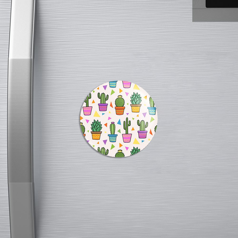 مگنت کاکتوس خندالو با روکش سلفون مات مخملی ضدخش و قطعه پشتی فلزی تولید شده است که آهنربای اتمی بکار برده شده در محصول، بصورت مخفی تعبیه شده ودیده نمی شود. ضمن اینکه گیرایی بسیار بالایی داشته و به هیچ عنوان از روی یخچال نمی افتد.