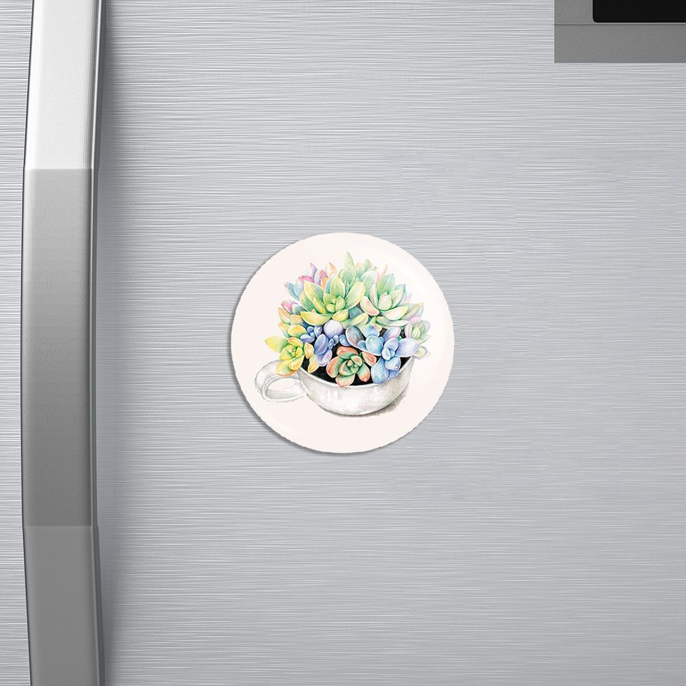 مگنت کاکتوس خندالو با روکش سلفون مات مخملی ضدخش و قطعه پشتی فلزی تولید شده است که آهنربای اتمی بکار برده شده در محصول، بصورت مخفی تعبیه شده ودیده نمی شود. ضمن اینکه گیرایی بسیار بالایی داشته و به هیچ عنوان از روی یخچال نمی افتد.