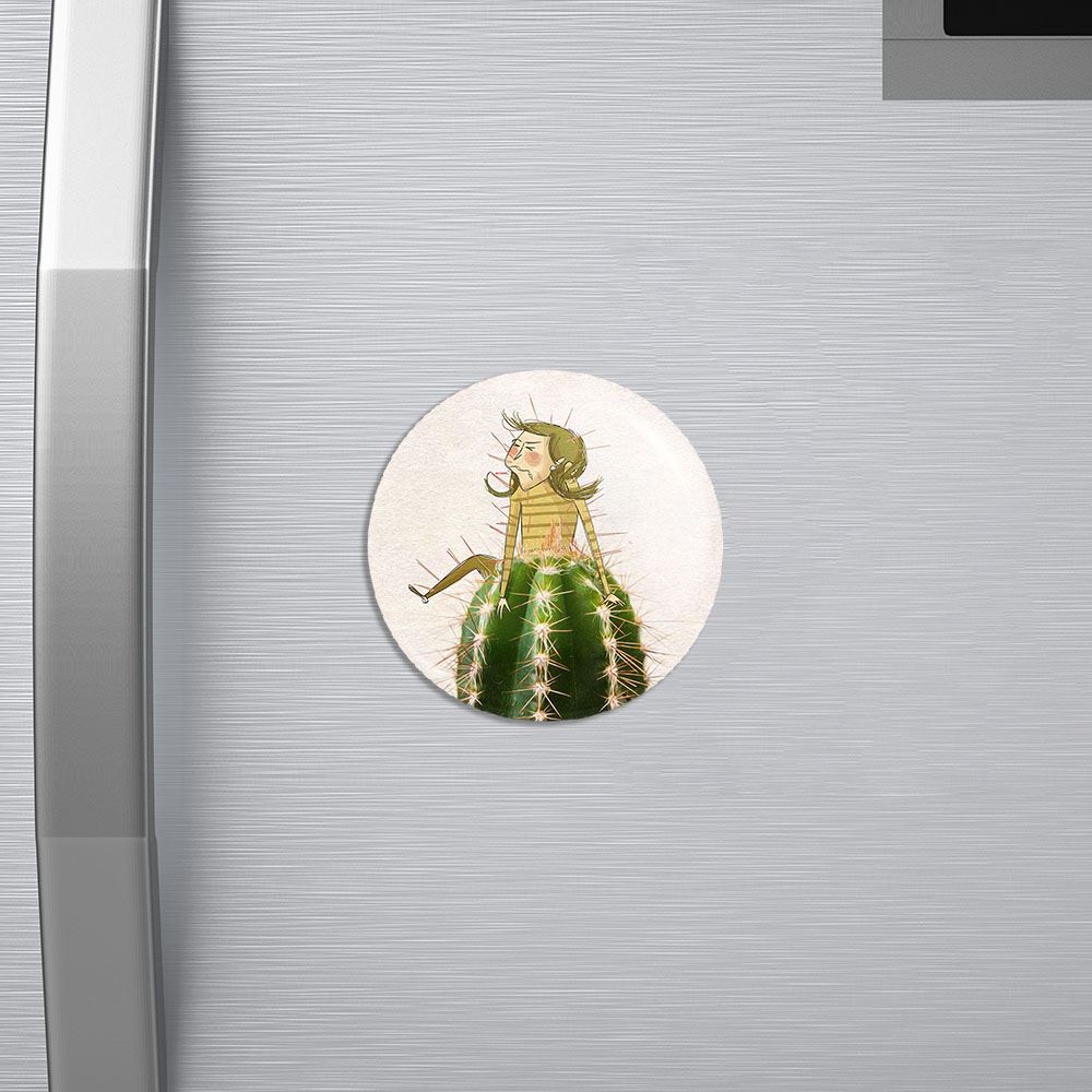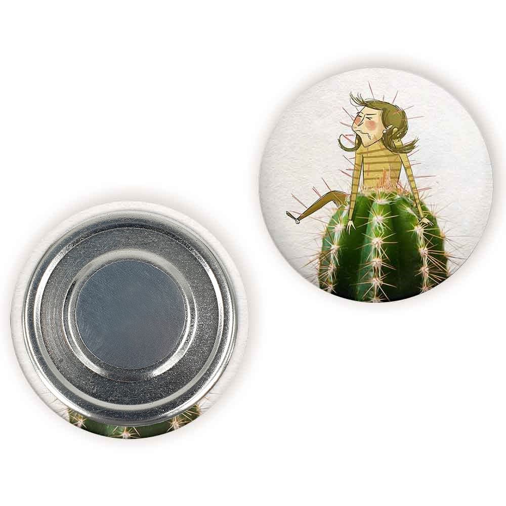 مگنت کاکتوس خندالو با روکش سلفون مات مخملی ضدخش و قطعه پشتی فلزی تولید شده است که آهنربای اتمی بکار برده شده در محصول، بصورت مخفی تعبیه شده ودیده نمی شود. ضمن اینکه گیرایی بسیار بالایی داشته و به هیچ عنوان از روی یخچال نمی افتد.