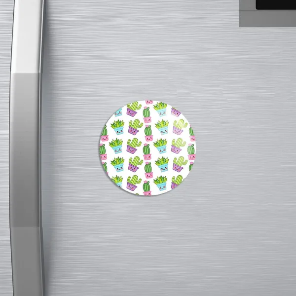 مگنت کاکتوس خندالو با روکش سلفون مات مخملی ضدخش و قطعه پشتی فلزی تولید شده است که آهنربای اتمی بکار برده شده در محصول، بصورت مخفی تعبیه شده ودیده نمی شود. ضمن اینکه گیرایی بسیار بالایی داشته و به هیچ عنوان از روی یخچال نمی افتد.