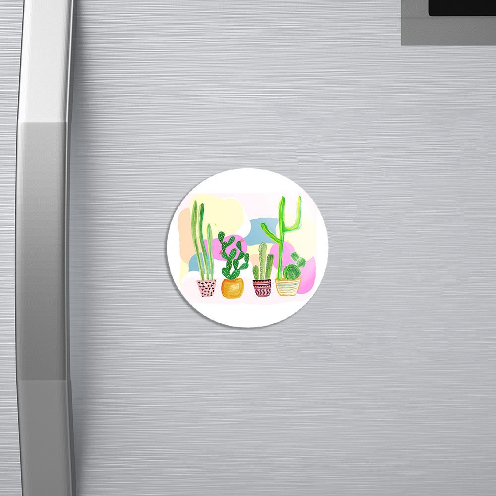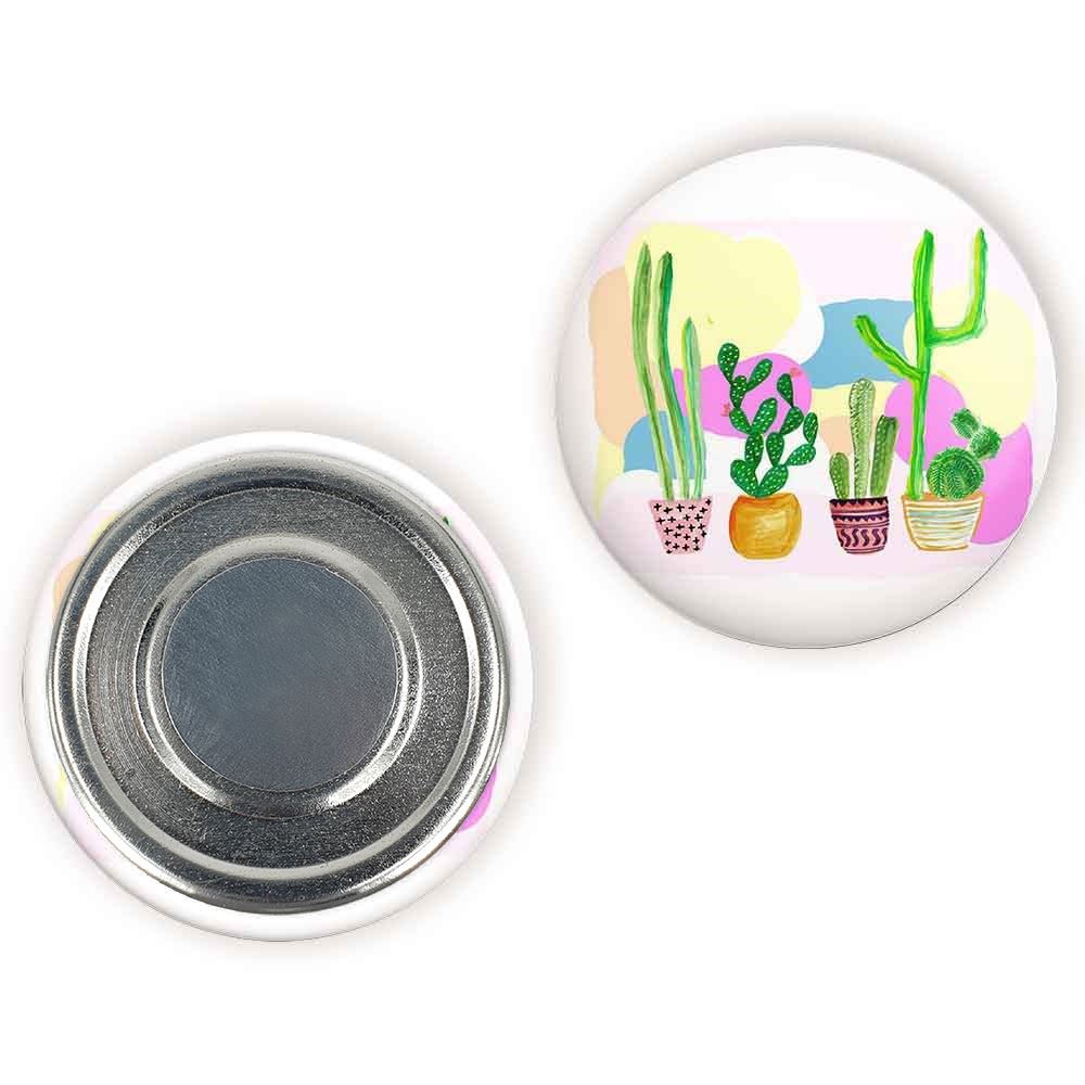 مگنت کاکتوس خندالو با روکش سلفون مات مخملی ضدخش و قطعه پشتی فلزی تولید شده است که آهنربای اتمی بکار برده شده در محصول، بصورت مخفی تعبیه شده ودیده نمی شود. ضمن اینکه گیرایی بسیار بالایی داشته و به هیچ عنوان از روی یخچال نمی افتد.