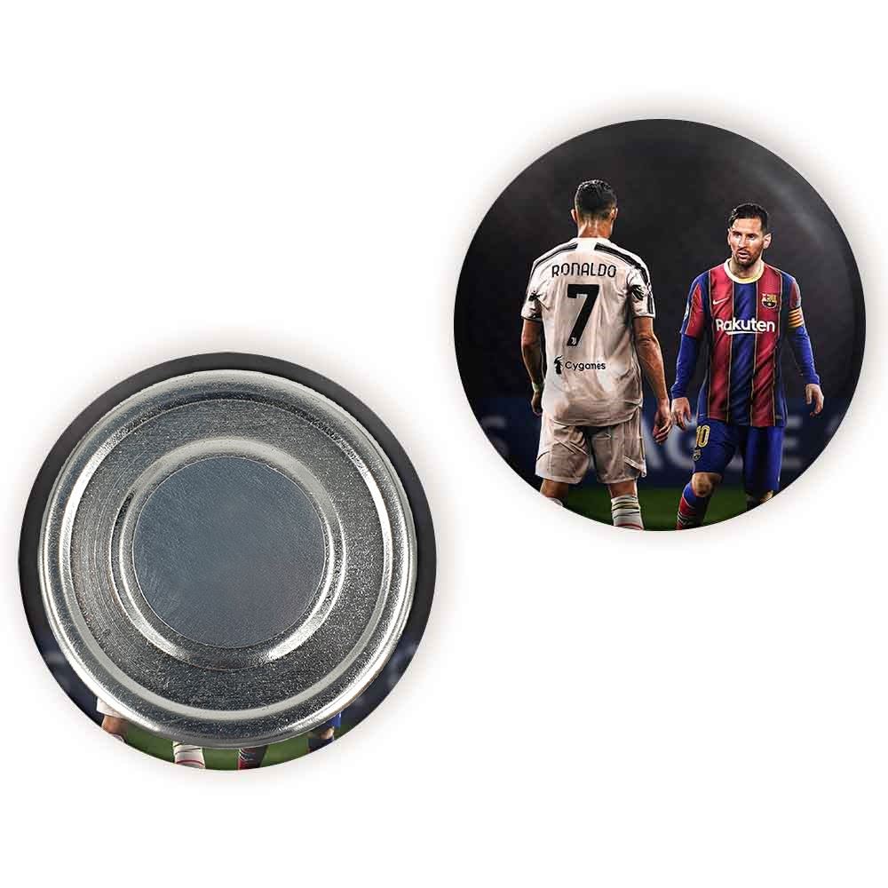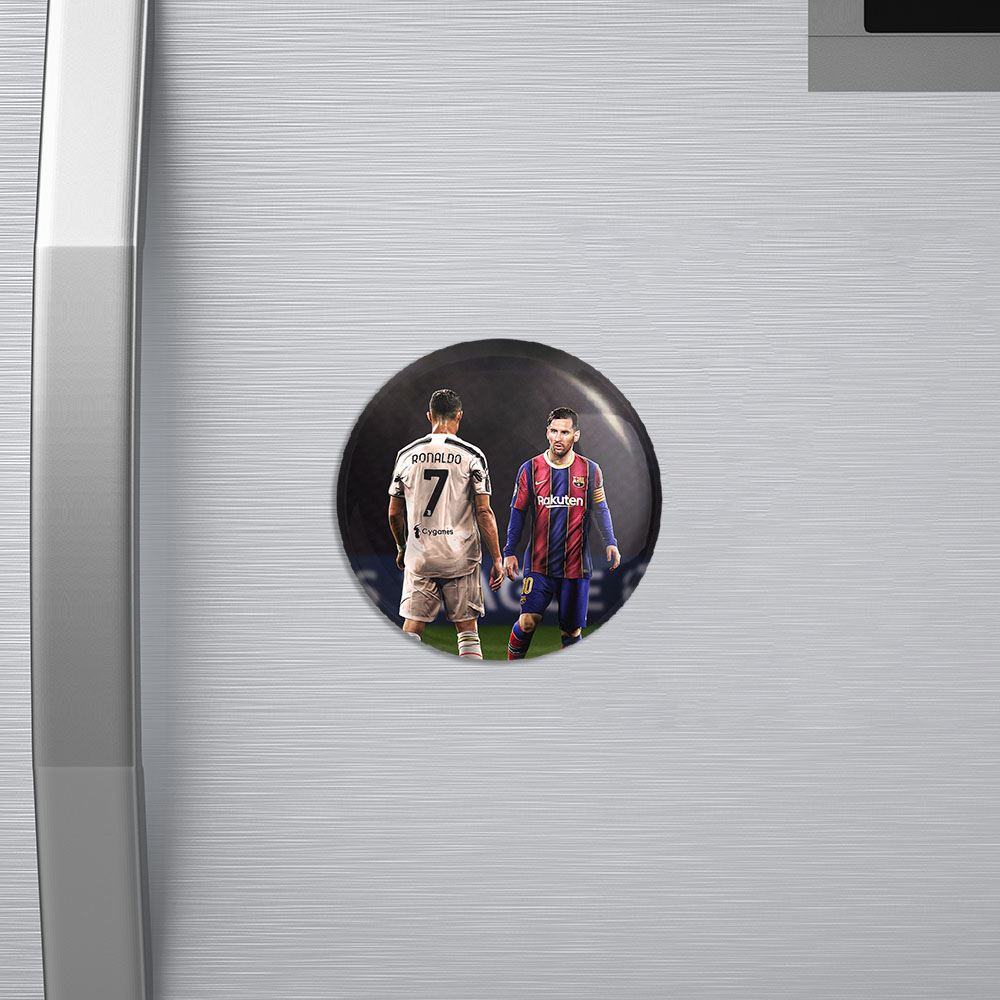 مگنت کریستیانو رونالدو و لیونل مسی خندالو با روکش سلفون مات مخملی ضدخش و قطعه پشتی فلزی تولید شده است که آهنربای اتمی بکار برده شده در محصول، بصورت مخفی تعبیه شده ودیده نمی شود. ضمن اینکه گیرایی بسیار بالایی داشته و به هیچ عنوان از روی یخچال نمی افتد.