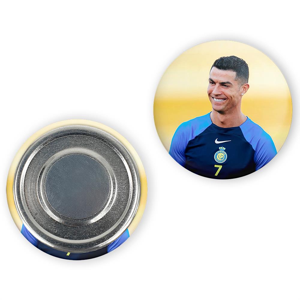 مگنت کریستیانو رونالدو خندالو با روکش سلفون مات مخملی ضدخش و قطعه پشتی فلزی تولید شده است که آهنربای اتمی بکار برده شده در محصول، بصورت مخفی تعبیه شده ودیده نمی شود. ضمن اینکه گیرایی بسیار بالایی داشته و به هیچ عنوان از روی یخچال نمی افتد.