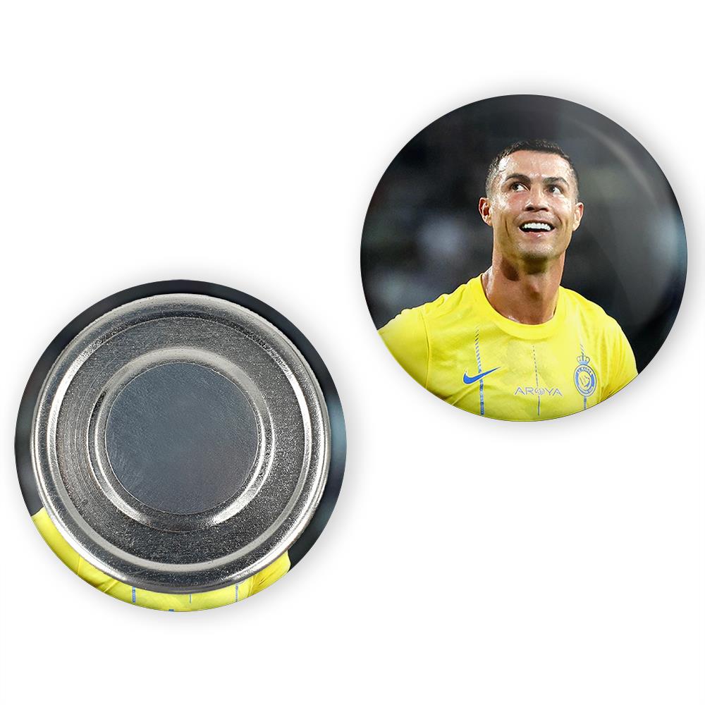مگنت کریستیانو رونالدو خندالو با روکش سلفون مات مخملی ضدخش و قطعه پشتی فلزی تولید شده است که آهنربای اتمی بکار برده شده در محصول، بصورت مخفی تعبیه شده ودیده نمی شود. ضمن اینکه گیرایی بسیار بالایی داشته و به هیچ عنوان از روی یخچال نمی افتد.