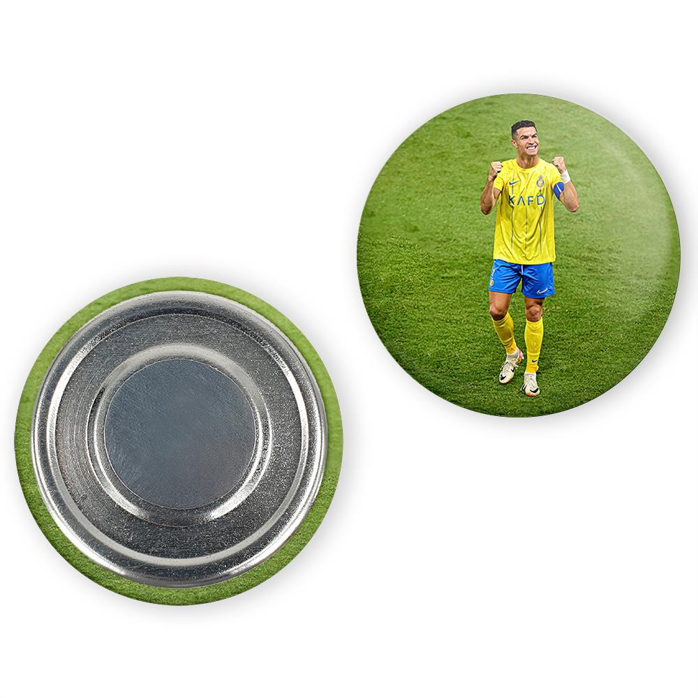 مگنت کریستیانو رونالدو خندالو با روکش سلفون مات مخملی ضدخش و قطعه پشتی فلزی تولید شده است که آهنربای اتمی بکار برده شده در محصول، بصورت مخفی تعبیه شده ودیده نمی شود. ضمن اینکه گیرایی بسیار بالایی داشته و به هیچ عنوان از روی یخچال نمی افتد.