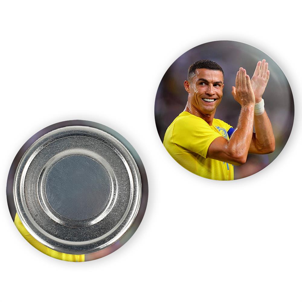 مگنت کریستیانو رونالدو خندالو با روکش سلفون مات مخملی ضدخش و قطعه پشتی فلزی تولید شده است که آهنربای اتمی بکار برده شده در محصول، بصورت مخفی تعبیه شده ودیده نمی شود. ضمن اینکه گیرایی بسیار بالایی داشته و به هیچ عنوان از روی یخچال نمی افتد.