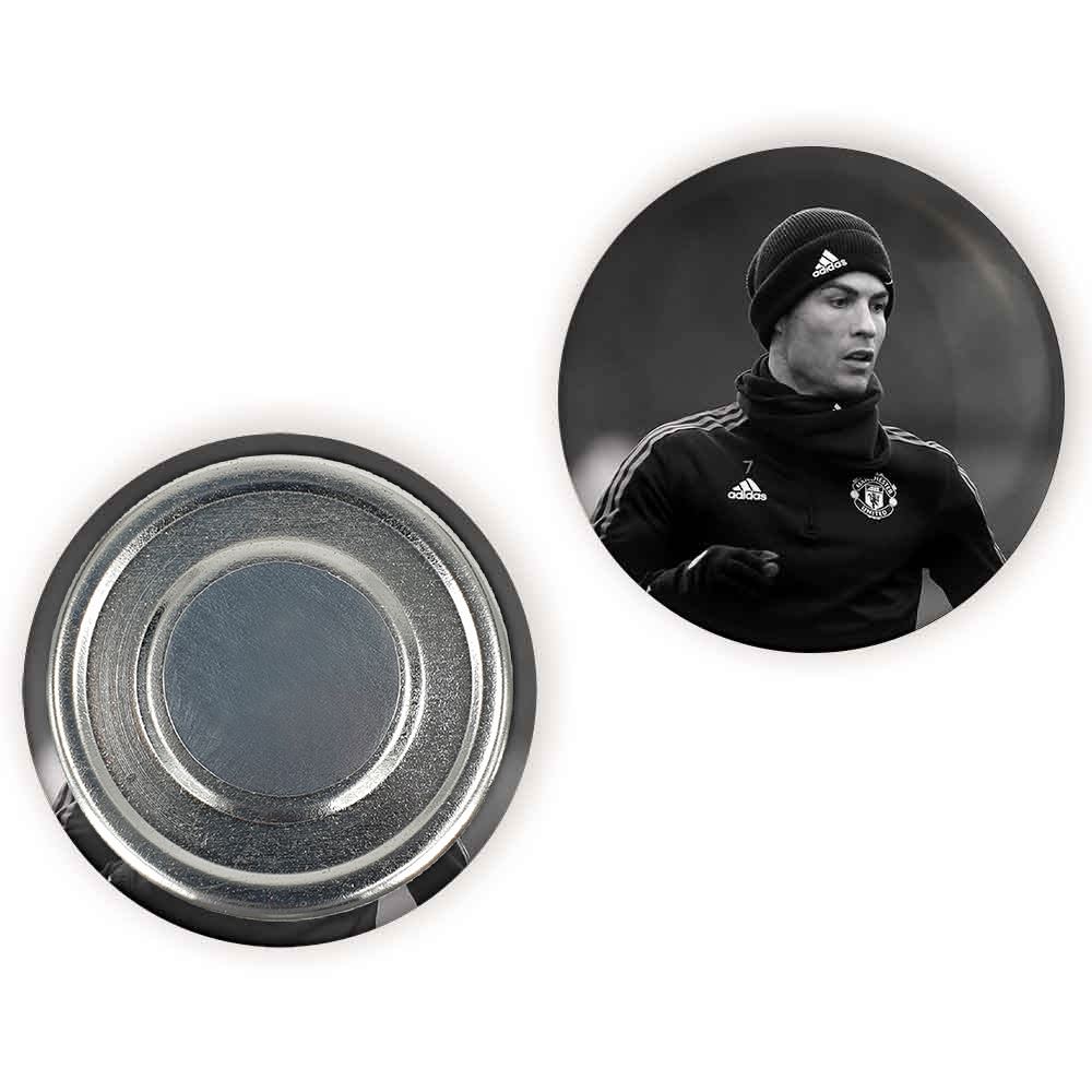 مگنت کریستیانو رونالدو خندالو با روکش سلفون مات مخملی ضدخش و قطعه پشتی فلزی تولید شده است که آهنربای اتمی بکار برده شده در محصول، بصورت مخفی تعبیه شده ودیده نمی شود. ضمن اینکه گیرایی بسیار بالایی داشته و به هیچ عنوان از روی یخچال نمی افتد.