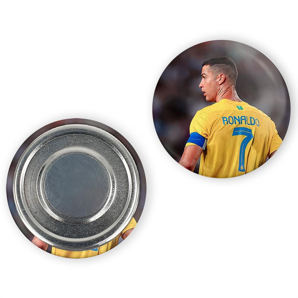 مگنت کریستیانو رونالدو خندالو با روکش سلفون مات مخملی ضدخش و قطعه پشتی فلزی تولید شده است که آهنربای اتمی بکار برده شده در محصول، بصورت مخفی تعبیه شده ودیده نمی شود. ضمن اینکه گیرایی بسیار بالایی داشته و به هیچ عنوان از روی یخچال نمی افتد.